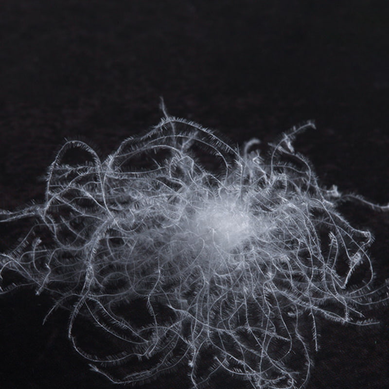 흰기러기의 다운 생산 핵심 부위인 배, 목, 날개에서 유래한 천연 다운은 푹신한 구조를 가지고 있으며, 벗겨진 깃털과 과학적으로 조화되어 보온성이 뛰어난 조합을 이루고 있습니다. 고급 동물성 단백질 섬유로서 각 구스다운 섬유는 나노 규모의 삼각형 기공 네트워크로 덮여 있습니다. 이 정밀한 구조는 탁월한 온도 제어 특성을 제공하며 주변 온도에 따라 섬유 간격을 지능적으로 조정하여 동적 온도 제어 시스템을 형성할 수 있습니다. 인체에서 방출되는 열에너지가 다운층에 접촉하면 기공 구조가 열을 효율적으로 흡수하여 열사이클을 형성하는 동시에 다차원 단열 장벽을 구축하여 찬 공기의 침투를 효과적으로 차단하고 오래 지속되는 따뜻한 착용감을 제공합니다.