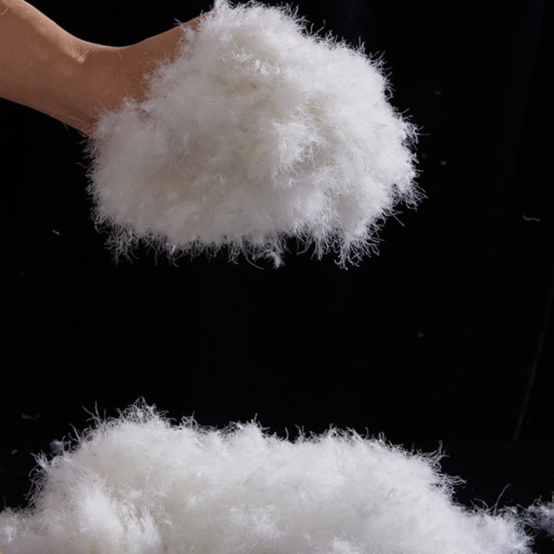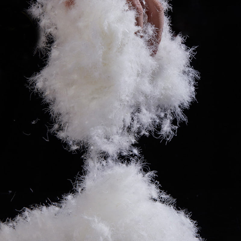 희귀한 흰기러기의 천연 내한성 부위인 복부, 목, 날개 아래 부위에서 추출한 독특한 갈대 모양의 솜털 구조와 벗겨지는 깃털이 황금 비율의 조합을 이루고 있습니다. 최고급 동물성 단백질 섬유의 대표적인 대표주자인 구스다운 섬유는 3차원 구형 형태로 표면에 수천만 개의 나노 크기의 삼각형 기공 매트릭스가 촘촘하게 분포되어 있습니다. 이러한 정밀한 기공 구조는 주변 온도 차이를 지능적으로 감지하고 섬유 간격을 자동으로 조정할 수 있는 미세 온도 제어 밸브와 같습니다. 신체의 열 에너지가 방출되면 기공은 물리적 흡착 효과를 통해 3차원 온도 잠금층을 형성하는 동시에 다차원 단열 보호망을 구성하여 찬 공기의 3차원 침투 경로를 효과적으로 차단하여 착용자에게 전천후 항온 미기후 환경을 조성합니다.